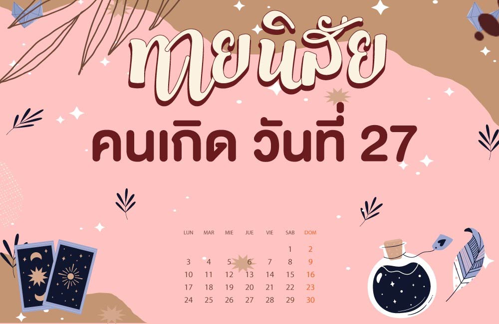 คนเกิดวันที่27 คนที่แน่วแน่แก้ไขในสิ่งผิด เป็นคนมีเมตตาสูง รักคนอื่นเหมือนรักตัวเอง แต่ ความเมตตานี้มีขอบเขตโดยจะมีให้อย่างเหลือเฟือกับคนที่ถูกต้อง ตามทำนองคลองธรรม แต่ถ้าคนผิดคนชั่วแล้ว สิ่งที่มีให้ก็คือ ความเห็นใจ ความเสียใจ คนเกิดวันนี้จึงเป็นคนมีความรับ ผิดชอบสูง เป็นพ่อแม่ที่ดี เป็นครูที่ดี และเป็นหัวหน้าผู้เที่ยงธรรม