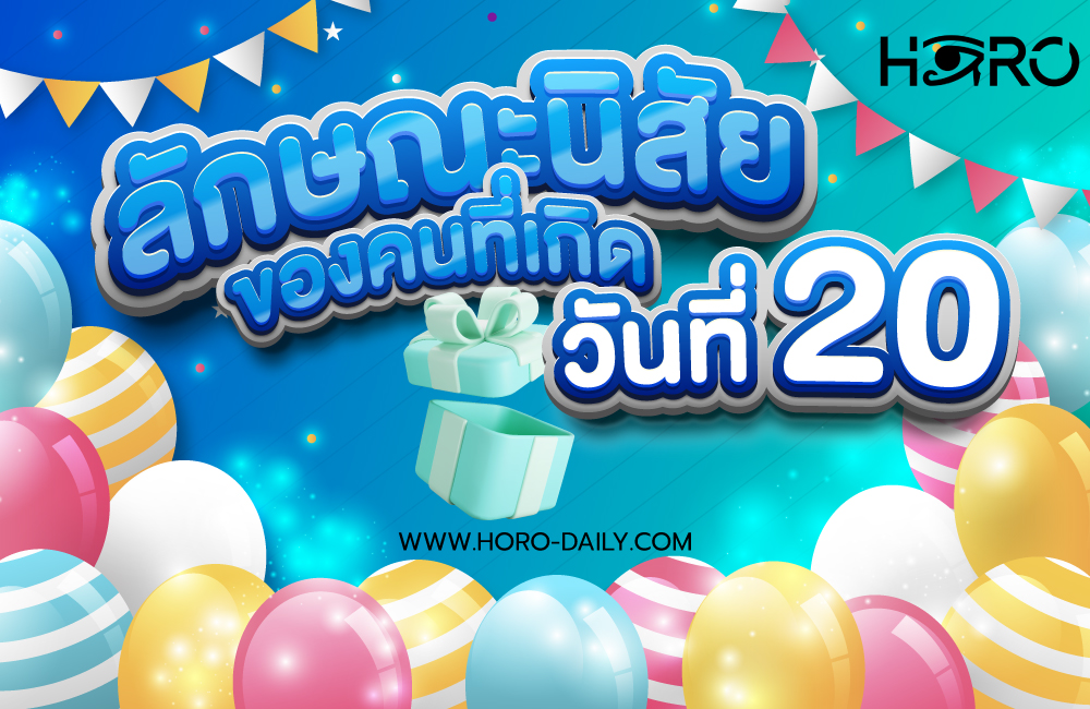 ดวงคนเกิดวันที่20 สิ่งที่ร้ายแรงที่สุดสำหรับคนเกิดวันนี้คือ การเป็นคนที่เห็นแก่ตัว พวกเขาจะรู้สึกผิดมากหากเผลอเอาเปรียบผู้อื่น คนเกิดวันนี้เป็นคนที่มีเซนส์แรง มีความโรแมนติก บางครั้งก็ใจร้อน และเป็นคนที่ให้กำลังใจตนเองไม่เก่งเท่าใดนัก แถมยังเป็นคนอ่อนไหวอีก ทำให้หลายครั้งมักระแวงว่าคนอื่นจะไม่ชอบ ทั้งที่คุณเองก็เป็นคนที่น่ารักไม่น้อย