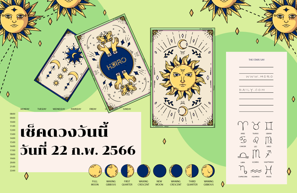 เช็คดวงวันนี้ 22-2-2566 เช็คดวงแม่นๆ ที่ horo-daily.com ที่เดียวจบ เช็คดวงความรัก เช็คดวงการงาน เช็คดวงการเงิน ดู ฤกษ์ดี กับแม่หมอสไบทอง ฟรี อัพเดทการทำนายดวงรายวัน แบบสดๆใหม่ๆตลอด 24 ชั่วโมง ทุกวัน